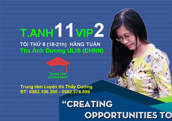- T.Anh11VIP2: Tối Thứ 6 hàng tuần, từ 18-21h - GV: Ths Ánh Dương ULIS (ĐH Ngoại Ngữ, ĐHQGHN)