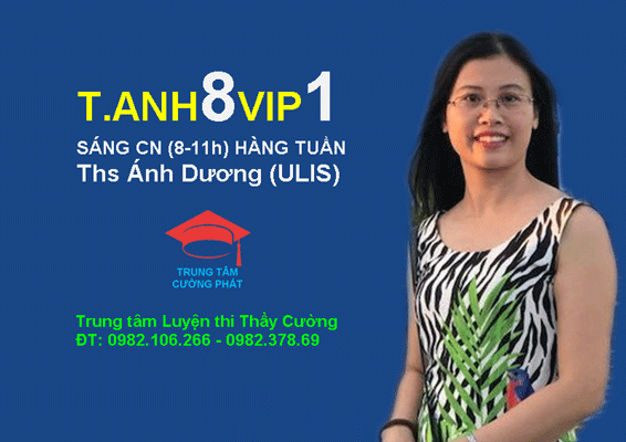 Tiếng Anh 8: Anh8VIP1: Sáng CN hàng tuần, từ 8-11h. GV: Ths Bùi Ánh Dương (ULIS)
