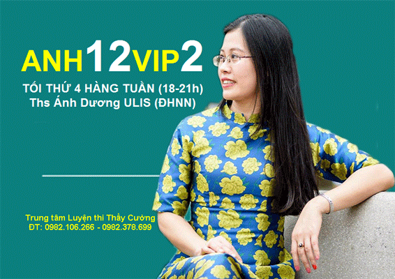 - Anh12VIP2: Tối Thứ 4 hàng tuần, từ 18-21h - Ths Ánh Dương ULIS